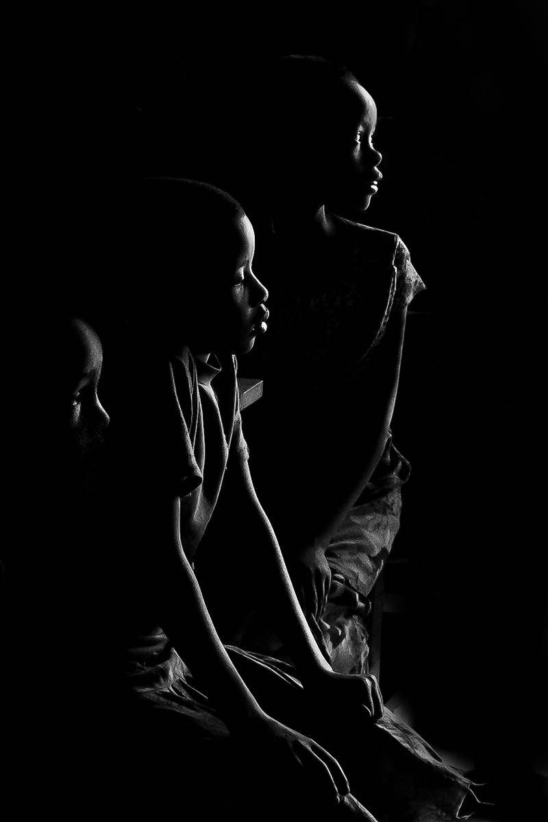 这张照片是一个学员拍摄的,拍摄地在非洲肯尼亚安博塞利的一个马赛村里的学校里。画面整体是比较凌乱的。但是在我看来,这个画面的几个孩子的轮廓光是非常棒的。为了表达孩子们对未知世界和对教育的渴望,在我的脑海里的画面是这样的: