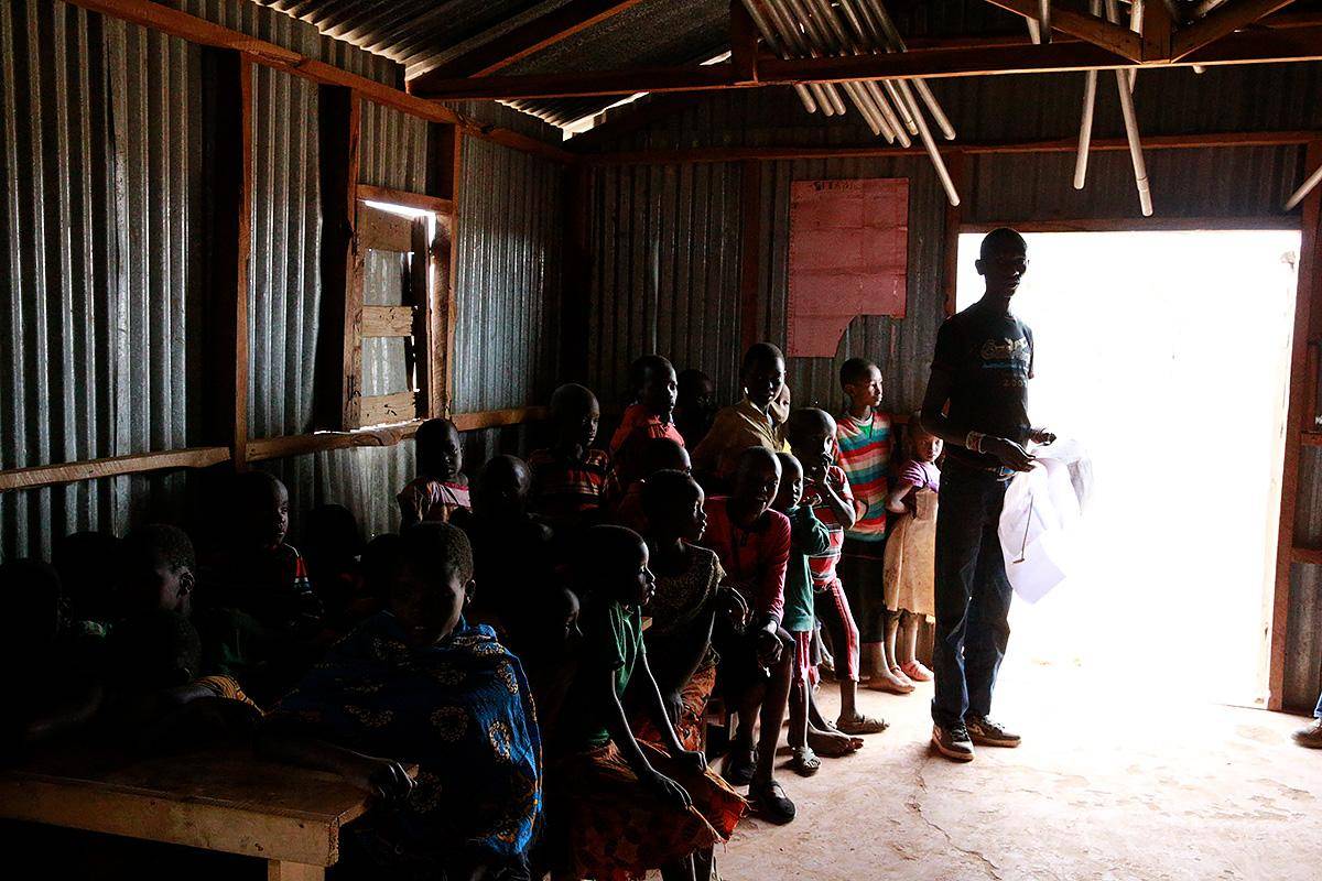 这张照片是一个学员拍摄的,拍摄地在非洲肯尼亚安博塞利的一个马赛村里的学校里。画面整体是比较凌乱的。但是在我看来,这个画面的几个孩子的轮廓光是非常棒的。为了表达孩子们对未知世界和对教育的渴望,在我的脑海里的画面是这样的: